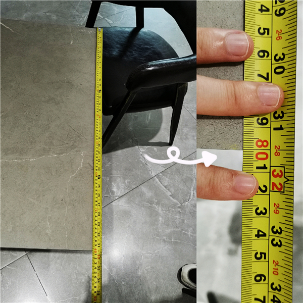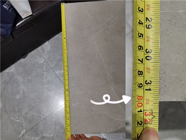 從得出數據中可看到,雨果防滑磚四條邊線的精準讀數均為800mm,四條邊和對角線的尺寸都毫無偏差。這樣一來無論是有縫鋪貼,還是無縫鋪貼,效果都幾近完美,消費者完全可以消除鋪貼過程中出現凹凸不平的顧慮。
