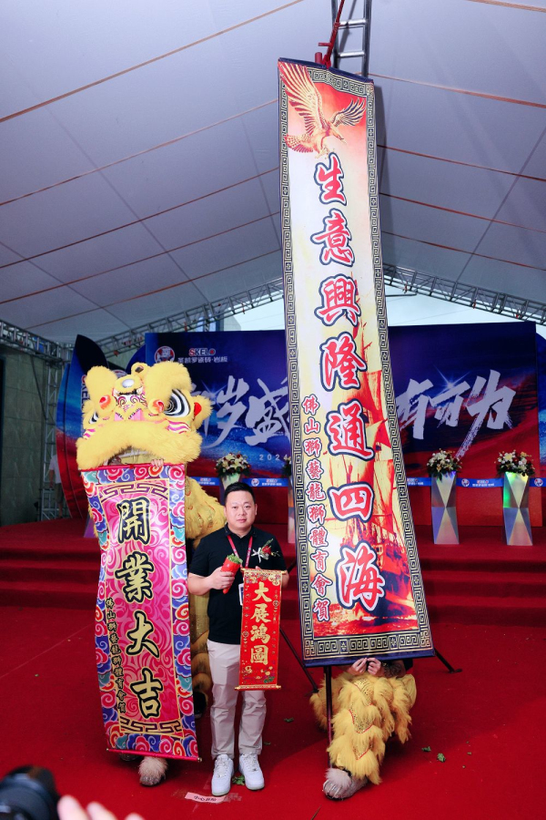 慶典當天,鑼鼓喧天,醒獅獻瑞,花籃簇擁,歡聲笑語。現場布置紅紅火火,處處洋溢著歡樂喜慶的氛圍。公司高層領導、嘉賓和經銷商客戶陸續進場簽到,共同祝賀圣凱羅全球總部新展廳開業大吉、財源廣進、宏圖大展!