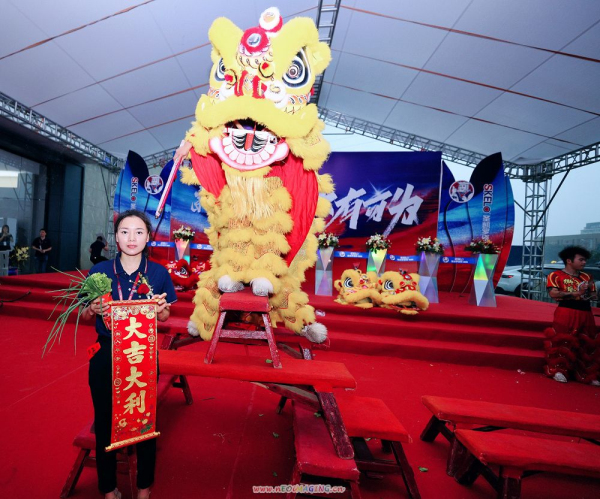 祥獅蘇醒,煥發出勃勃生機,必將為圣凱羅瓷磚•巖板帶來滾滾財源。雄獅在點睛后神采奕奕,接下來,是傳統的醒獅點睛采青儀式,瑞獅采青寓意瑞氣臨門,生財有道,步步高升;生菜寓“生財”之意,生菜落地,“落地生財” ,愿騰飛的祥獅能為圣凱羅瓷磚•巖板摘得好彩頭,讓企業發展蒸蒸日上,業績一路飄紅!