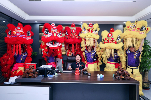 舞獅逛展,大吉大利!六只栩栩如生的獅子,身著華麗服飾,歡快地舞動著,為圣凱羅營銷總部新展廳帶來吉祥如意、大吉大利的祝福。激昂的鼓點、矯健的身姿,舞獅隊伍穿梭在人群中,與領導嘉賓們互動,將現場氣氛推向高潮。
