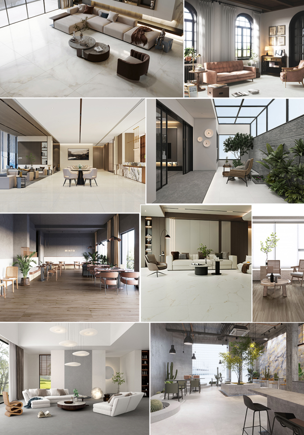 以市場應用為導向,充分滿足空間搭配的整體性和協調性,設計開發了子母磚系列產品,同時,重新梳理并擴大產品線陣容,建立亮光磚、雅光磚、緞光磚、微光磚、蠟光磚、柔光磚、防滑磚等全產品架構,室內全場景的墻地裝飾及建筑外墻和各類戶外地面的應用更全面。