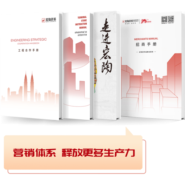 編制《走進宏陶》、《宏陶十大優勢》、《招商手冊》、《工程合作手冊》、《終端門店運營指導手冊》等基礎營銷教材類工具。完成賣點標貼牌、技術形象畫、專題活動物料等推廣輔助類工具升級。精準傳遞,激活品牌價值展現,輔助營銷體系釋放更多生產力;