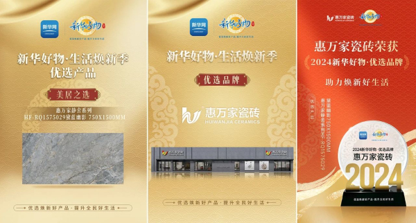 戰略合作啟動,惠萬家瓷磚 x 新華網《新華好物·生活煥新季》,共筑中國人的美好人居!通過“新華好物”的影響力、感召力,持續開展并升級“惠民煥新”政策,用“好物”的概念,推動產品品質消費升級,助力惠萬家品牌實力躍升。