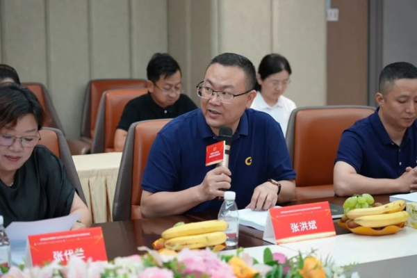 在會議議程中,金牌企業運營副總裁張洪斌對評審組的到來表示熱烈的歡迎,并由金牌企業產品總監黃旺明就平臺工作進行以“科技破界·應用新生”為主題的匯報。