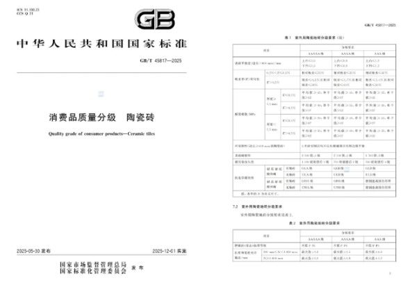 ▲GB/T 45817-2025《消費(fèi)品質(zhì)量分級(jí) 陶瓷磚》