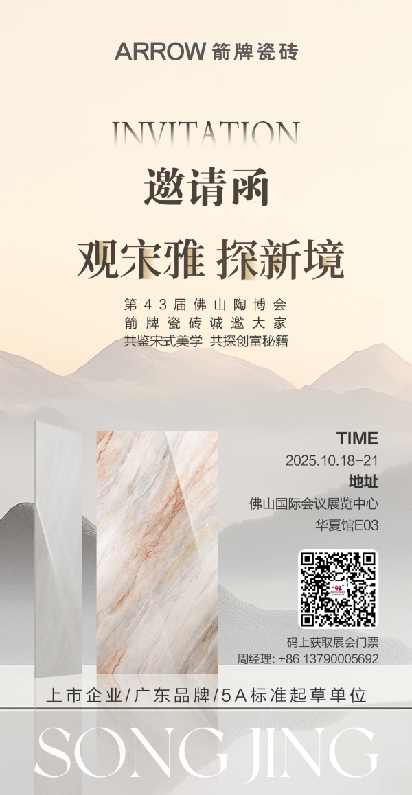 從“外炫”到“內愉”,當代家居的審美正在回歸本真。一方瓷磚,如何既能承載千年的風雅,又能安放當代生活的詩意?箭牌瓷磚攜全新800×1600mm黃金規格產品「宋境系列」 及「金絲絨系列」 ,在第43屆陶博會,給出了一份驚艷的答案。