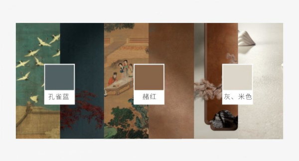 色彩密碼:系列特別提煉出內斂溫和中性色為主色調,以極具宋代特色的孔雀藍、赭紅色作為配色,點綴于中性色之間,為現代空間注入一抹沉靜而不失格調的詩意。