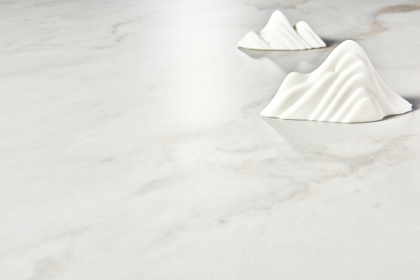 「宋境·玉」運用45°柔拋工藝,讓磚面更加接近天然石材的光感,柔光質感更加高級,用在客餐廳、臥室光感非常舒適;疊加了冰晶干粒,光感細節更加豐富精致。