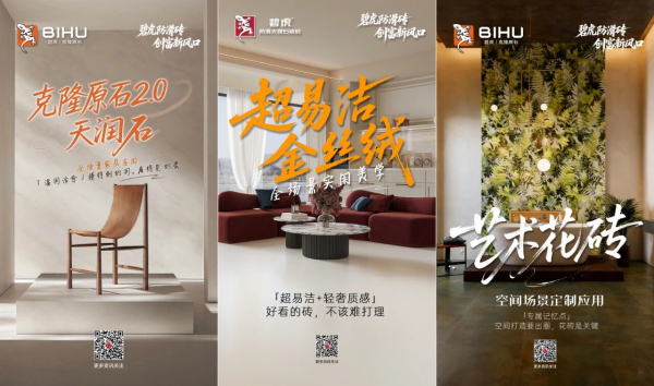 現場,碧虎發布 【超易潔金絲絨】、【克隆原石2.0 天潤石】、【民宿藝術磚】、【碧虎IP萊姆石】等新品,全面打造“防滑+” 新品矩陣,并深入解讀產品優勢與場景搭配。