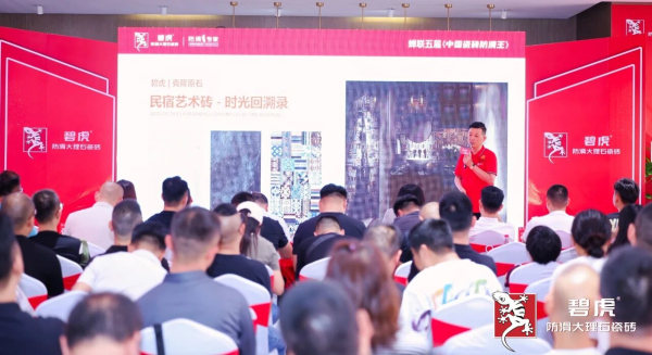 作為軍人出身、深耕陶瓷行業 20 多年的防滑專家,碧虎創始人彭天奎全面回顧品牌發展歷程,并聚焦碧虎防滑大理石、BIHU克隆原石核心成果總結發言。