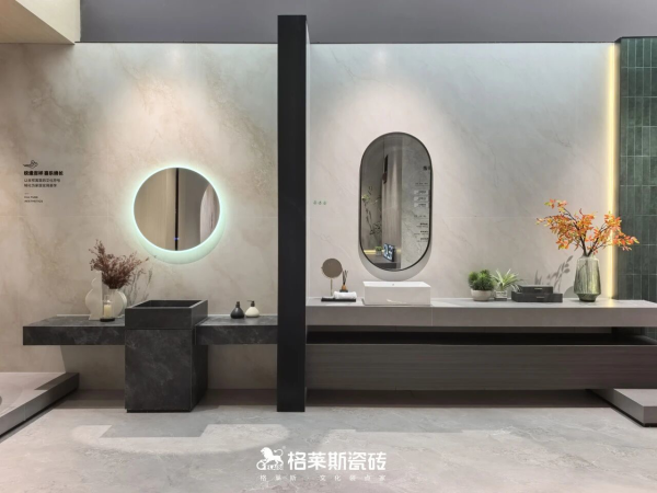 格萊斯瓷磚總部以“傳承經典文化”為內核,通過場景化設計與“五好品牌”的融合展示,將傳統文化的厚重與現代質感的追求無縫銜接,實現美學表達的融會貫通。