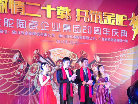 2014年1月8日,【激情二十載,共筑金舵夢】金舵陶瓷企業20周年慶典在佛山舉行,金舵陶瓷企業領導與全體員工,以及來自全國各地的經銷商代表、供應商代表和媒體朋友等700人齊聚一堂,共同見證這一喜慶時刻。