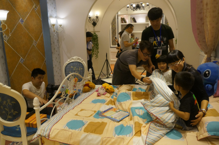 各位進入決賽圈的參賽媽媽,率領各自的家庭團隊進入藍珀瓷磚“法式生活館”。站在這里,本次活動導演季先生,對展廳內的不同功用與風格的實景間贊不絕口。很快,各參賽團隊都找到了屬于自己的展示空間。