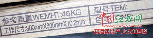 朱先生所購萬美瓷磚外包裝上標注的參考重量為46kg。