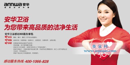 安華衛浴十多年來一直踐行“感動365服務”,給消費者提供360度的衛浴售前、售中、售后服務,用經典的設計品質,卓越的性能品質,貼心的整合品質,感動的服務品質以及綠色的企業品質五大安華核心理念,以"品質潔凈中國"為企業愿景,推動中國衛浴不斷向前。