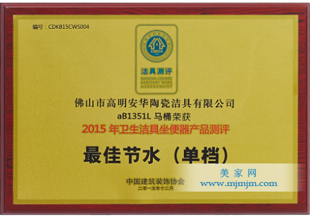 在剛剛結束的“2015衛生潔具坐便器、廚衛水龍頭產品調研結果發布暨品質衛浴認證啟動會”上,安華衛浴aB1351超節水坐便器榮獲有衛浴“奧斯卡”之稱的“金馬桶”最佳節水獎,這是安華衛浴連續兩年獲得“金馬桶”此項殊榮。現在小編就帶你揭開安華衛浴超節水坐便器aB1351神秘的面紗,看看它憑什么能夠在眾多坐便器中脫穎而出,斬獲此榮譽。