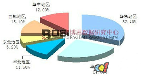 2014年我國木制家具行業(yè)消費(fèi)主要集中在華東、華南地區(qū),2014年我國木制家具行業(yè)消費(fèi)區(qū)域分布如下圖所示: