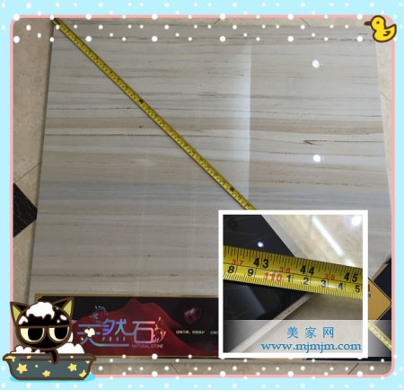 小編拿來卷尺測量了此款瓷磚的規(guī)格,測量結果:邊長800mm,對角線長113.1mm,與商家給出的尺寸相符。按照800mm*800mm的正方形計算,對角線應該是1131.3708mm。尺寸數據與實際測量數據準確無誤,是一款規(guī)格正式的好產品。