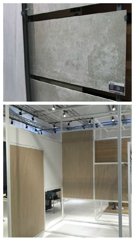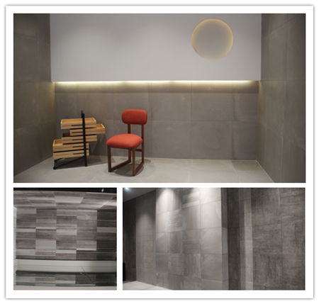 在今屆展會上,灰色系列的產品十分備受青睞,這種舒適、大氣、復古并略帶現代工業風元素的色系產品也將會成為流行趨勢。箭牌瓷磚在今屆展會上主推的互動自然系列瓷磚以及安華瓷磚推出的水泥磚、砂巖磚等系列瓷磚,灰色即視感十分強烈。