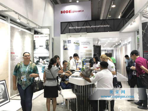 博德以連續六年自主品牌出口額穩居第一的成績拓展自身品牌國際實力,已然形成“出口國家多、出口數量大、出口比例高”等博德特色。本次展會,博德展位融合了佛山總部營銷中心新推出的精工瓷石輕奢館的“奢而不侈、張而不揚”主義風潮設計感,時尚簡約的設計風格,巧妙運用設計,充分利用通道而擴大了展位的空間感,搭建出具有國際風范的建筑風格的展位。