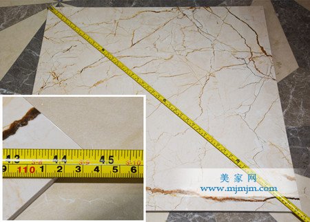 一塊好瓷磚怎么能離開準確的規格,測評人員在現場進行測量,得出結果是瓷磚的規格是長800mm*寬800mm,對角線為1131.3708mm。尺寸數據與實際測量數據準確無誤,是一款規格正式的好產品。