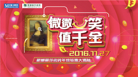 如今蒙娜麗莎瓷磚又為消費者們準備了年終盛宴“微微一笑值千金”,簡直不能更贊!讓我們看看這次蒙娜麗莎瓷磚為我們帶來了什么驚喜吧!