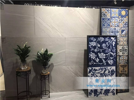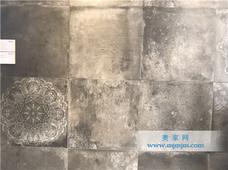 仿古磚依然是本屆展會的主力軍,在產品設計方面除了常見的砂巖、理石、水泥、木紋,更融入了織物、布藝等元素,韻味十足。如費羅娜水泥磚推出了“ZHI”新品,道迅瓷磚展示了牛仔布瓷磚。
