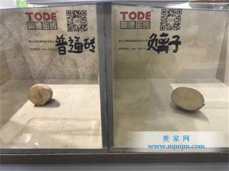 環保是永恒的話題,而健康則是大家最關注的焦點。越來越多功能性的瓷磚產品受到了大家的關注。除了安全系數更高的防滑瓷磚,陶陶在展會現場還看到了諸如量子能量陶瓷等產品,而最為顯眼的,莫過于陶德磁磚的負離子瓷磚。