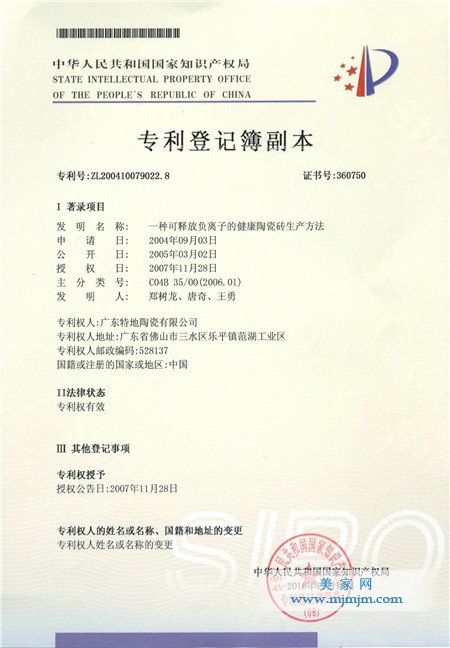 隨著生活水平的提高,現代人對裝修的需求不僅追求美觀和質量,而且重視健康和環保,瓷磚的趨勢走向綠色化,負離子成為了熱門的新興產品。特地·負離子瓷磚榮獲國家發明專利,掌握核心科技,是一款可產生負離子、凈化空氣的健康瓷磚,為我們的生活創造如同森林氧吧的室內環境。