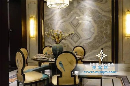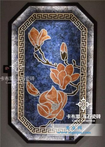 赤橙黃綠青藍紫,誰持彩練當空舞。東方玉石館為我們演繹著不一樣的色彩神韻、元素搭配,水墨色之悠遠,靛青色之神韻,赤紅色之尊貴,還有“出水芙蓉”、 “芝蘭玉樹”、“多子多福”等中式意蘊拼花的應用,既讓玉石瓷磚的搭配與東方美學相融合,又處處透露出古香古色的東方韻味。