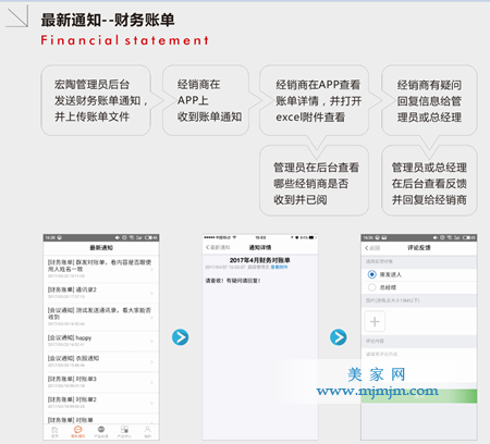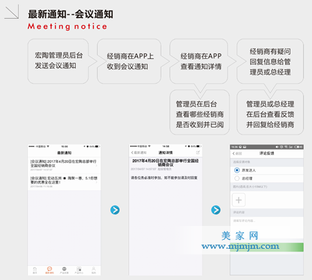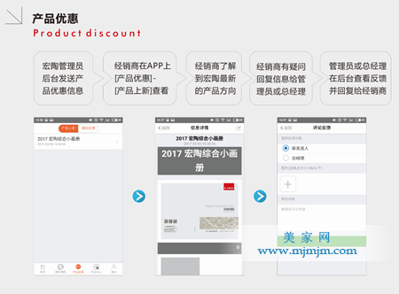 宏陶陶瓷引進APP智能管理平臺系統(tǒng),利用電子科技科技平臺,縮短廠商之間的溝通距離,降低時間耗能,提高工作效率。通過APP智能管理平臺系統(tǒng),可隨時掌握宏陶官方最新動態(tài),最先獲得宏陶一手產(chǎn)品資料,隨時隨地接收宏陶官方最新通知和財務賬單,銷售人員可以快捷通知所服務經(jīng)銷商 。經(jīng)銷商有什么問題可以直接通過這個APP的總經(jīng)理信箱,直接反饋,直達開通綠色通道。