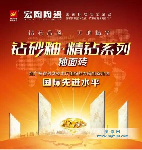 宏陶“鉆砂釉•精鉆”和“柔韻系列”產品正是采用了“鉆砂釉技術”,是我們宏陶公司獨立自主研發的創新科技成果,已獲得國家發明專利。“鉆砂釉•精鉆”和柔韻系列產品觸感如玉,在斜光照射下,釉面細小的鉆砂結晶體閃爍發光,同時有效地提高了防污能力,且使釉面磚的耐磨度和硬度有了顯著的提高。