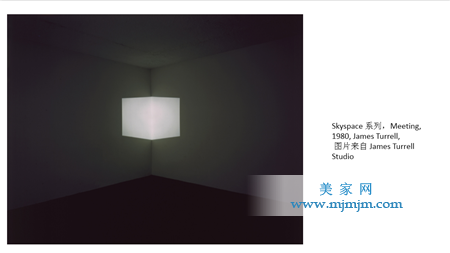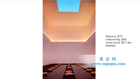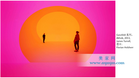 James將光迎效性發生了有機械感的錯視效果,這種效果會讓你等待,進而詮釋、觸摸、擁抱。這個空間利用光的色彩感改變我們存在的位置,發生了移情的關照。