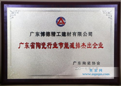 廣東博德精工建材有限公司多年來積極響應(yīng)國家節(jié)能降耗政策的號召,節(jié)能環(huán)保工作一直走在行業(yè)前列。由于節(jié)能減排工作成效突出,博德公司被評為“廣東省陶瓷行業(yè)節(jié)能減排杰出企業(yè)”。