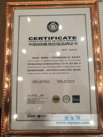 由世界品牌實驗室(World Brand Lab)主辦的第十四屆“世界品牌大會”于6月22日在北京舉行,會上發(fā)布了2017年《中國500最具價值品牌》分析報告。在這份基于財務數(shù)據(jù)、品牌強度和消費者行為分析的年度報告中,陶城瓷磚因其龐大的市場占有率和強勁的發(fā)展勢頭,以45.68億品牌價值,榮登“中國500最具價值品牌”,步入中國品牌500強行列。