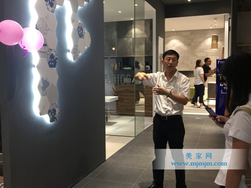 在交流會開始之前,營銷總經理黃軍民帶領在場的媒體朋友們介紹展廳及各種系列瓷磚的情況,菲爾敦瓷磚目前主要品產種類有:超晶石、28 ° 柔光石、瓷拋玉、晶鉆石、通體大理石等,并涵蓋300×300mm、500×500mm、600×600mm、800×800mm、600×1200mm等多種規格的產品,可以滿足消費者的不同需求,各種簡約拼接的時尚年輕風格真心感到家的溫暖,相信更能給消費者帶來“家”的深刻感受及喜愛。