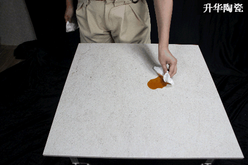 ④醬油并沒有滲入到瓷磚磚體,只需用紙巾抹擦就已潔凈如初。