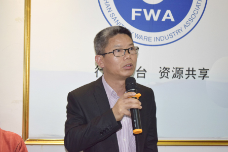 佛山市衛浴潔具行業協會會長朱云峰先生發表致辭,他表示,協會成立5年以來,得到了在座媒體朋友的支持及關愛,希望媒體朋友們在接下來的日子里仍一如既往的支持佛山市衛浴潔具行業協會的發展,一同攜手并肩開創衛浴協會更美好的明天!