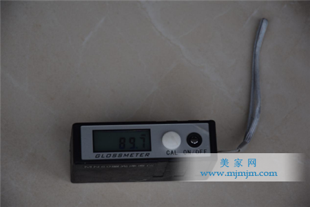 為了測試瓷磚裝修給人帶來的視覺感,美家網使用專業的光澤儀,在瓷磚的表面進行不同的位置進行測試,最后的出結果為89.7。“卡拉斯黃”的光澤度也是無缺陷的。