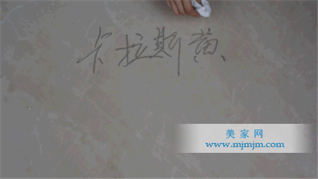 測量瓷磚的抗污性尤其重要。隨之,小編在瓷磚表面寫下幾個大字,隔幾分鐘后用干紙巾輕輕抹掉,字跡隨之也不翼而飛,看來領航這款“卡拉斯黃”系列產品抗污性也相當不差。美家網小編測評總結:“卡拉斯黃”瓷磚能承壓。能防污,能耐磨等性能,是居家必備的良品:由此可見領航企業對造瓷磚的“專注度”十分之高。親愛的你還在等什么,快快搬磚回家吧!