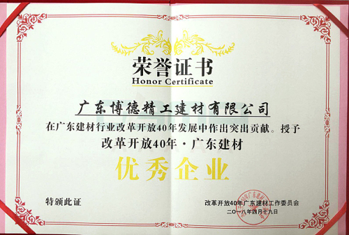 憑借產品、技術和經營理念的創新和突破,廣東博德精工建材有限公司榮獲“改革開放40年•廣東建材優秀企業”稱號,董事長葉榮恒被授予“改革開放40年•廣東建材杰出貢獻獎”。這是廣東省建材行業協會及業界對博德多年來專注堅守的發展思路,為我國建陶行業作出突出貢獻的認可和鼓勵。