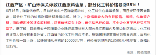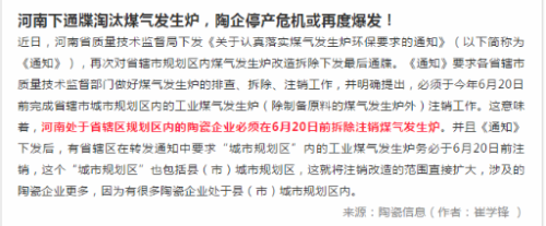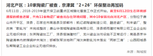 2018年,藍天保衛戰席卷全國,各個陶瓷產區分別遭遇不同程度的環保整治,眾多環保不達標的陶瓷企業面臨停產,陶瓷產區產量急劇下降。