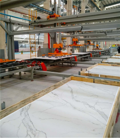 2017年,金牌企業全線進口世界一流設備,自主研發、設計和生產出大規格瓷磚——澳翔大巖板,開拓更高端的消費市場。澳翔大巖板的所有設備均先于行業,整線為600多米的智能化環保生產線,配套了西斯特姆三萬噸先進無模成型壓機、10通道高清瓷磚噴墨打印機,整線使用天然氣的環保生產燃料,生產車間靜音無塵,減少粉塵達90%,實現智能化運轉,節約勞動力73%,僅需少量專業技術人員監控管理,是陶瓷行業智能制造和綠色環保的先行者與踐行者。