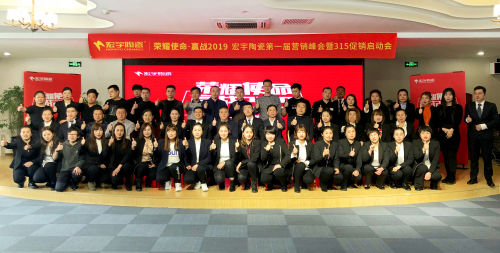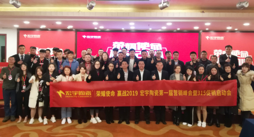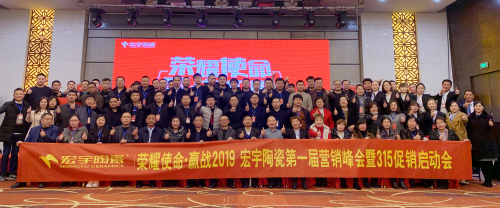 乘全國兩會的東風,2019年宏宇陶瓷第一屆營銷峰會暨315促銷啟動會勝利召開,覆蓋全國9個重點城市,現場共吸引了過千名終端經銷商出席。此次營銷峰會的召開,不僅向全國經銷商傳達了積極的強心信號,更全面展示了宏宇縱深推進“品牌升級”和“展廳升級”的決心和魄力。