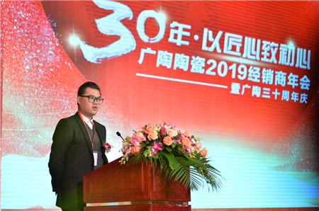 會上,廣陶陶瓷營銷部副總經理姚妙英女士對廣陶在2018年取得的成果作了總結匯報,她說:“2018年,廣陶陶瓷通過深化品牌升級,賦能運營變革,從代理商及終端門店出發,通過產品、渠道、品牌多維度、多層級的戰略矩陣,讓廣陶陶瓷在整個陶瓷行業低迷的大環境下實現逆勢增長,鎖定了市場份額,樹立了品牌形象,堅定了代理商及消費者對廣陶陶瓷的信心。”而2019年,廣陶陶瓷將迎來它的30周年慶,”秉承一初心,匠心三十年!專注產品、專注品牌、專注服務,聚力終端,匠心致遠!”廣陶陶瓷將一直踐行到底。