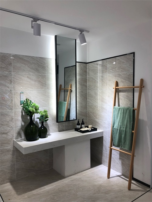 以下四個空間都是現代簡約風格衛生間,都選用了灰色磚進行鋪貼,可見,灰色磚是現代家居的主流產品,很多消費者來我們店看產品都會被灰色磚的模擬間驚艷到,耐看、耐臟、適用范圍廣等優點深受消費者喜愛。