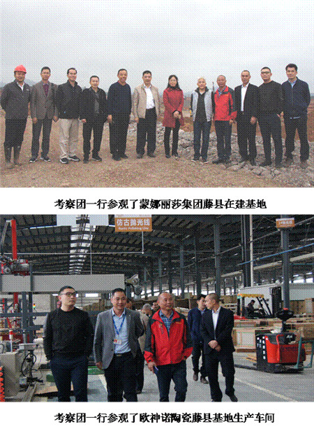 18日考察團參觀了中和陶瓷產業園區,以及蒙娜麗莎在建工地、歐神諾陶瓷生產車間等企業,并與園區內部分企業舉行了座談,雙方企業交流了意見,除了肯定藤縣得天獨厚的自然投資環境外,大家無一不豎起大拇指,對藤縣的政府服務給予了大加點贊。
