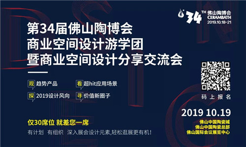 “第34屆佛山陶博會(huì)商業(yè)空間設(shè)計(jì)游學(xué)團(tuán)暨商業(yè)空間設(shè)計(jì)分享交流會(huì)”由組委會(huì)精心設(shè)計(jì)高質(zhì)參觀路線、設(shè)計(jì)大咖帶團(tuán)現(xiàn)身說(shuō)法,解析本年度個(gè)性潮流建陶衛(wèi)浴新品、商業(yè)空間設(shè)計(jì)新風(fēng)向,還會(huì)提供您與廠家提供深度交流互動(dòng)的機(jī)會(huì)!