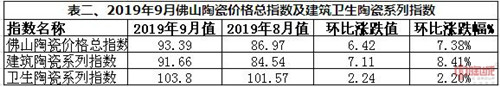 表一、2019年8月至9月佛山陶瓷價格指數(shù)走勢圖