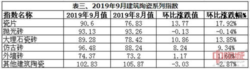 2019年9月佛山陶瓷價格指數(shù)走勢點評分析